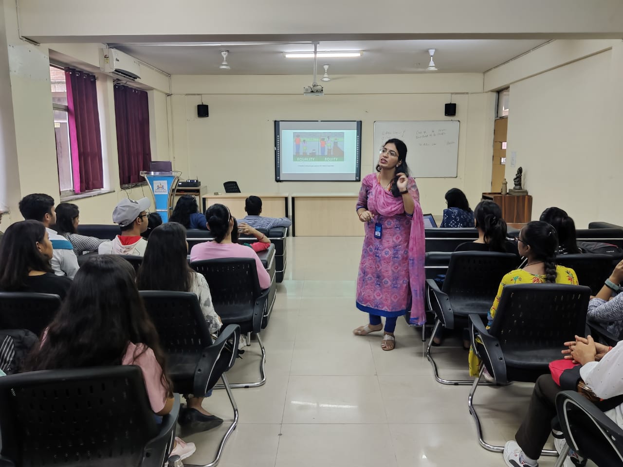 A session on Gender Equity was organised in the Management department for BBA and B.COM students under the aegis of Internal Complaint Committee ( ICC) of the Institute on 12-10-22.The session was taken by ICC co-ordinator Dr. Suruchi Khanna. The students were sensetized about gender equality.  Students were made to understand that as youth they can bring the required change in the society towards a sensitive issue of gender biased ness